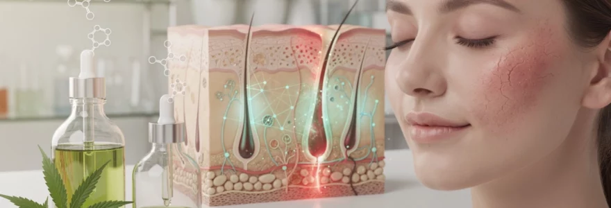 Le cannabidiol (CBD) représente le cannabinoïde le plus étudié pour ses applications dermatologiques. Cette molécule exerce des effets anti-inflammatoires puissants en modulant la production de cytokines pro-inflammatoires comme l’interleukine-6 et le facteur de nécrose tumorale alpha. Des recherches publiées en 2014 dans le Journal of Clinical Investigation ont démontré que le CBD inhibe la prolifération excessive des sébocytes et réduit la production de sébum, ce qui en fait un actif précieux pour les peaux grasses à tendance acnéique. Le cannabigérol (CBG), moins connu mais tout aussi prometteur, présente des propriétés antibactériennes et antifongiques qui complètent l’action du CBD. Ces cannabinoïdes agissent comme de véritables modulateurs biologiques, restaurant l’équilibre physiologique des peaux déstabilisées.