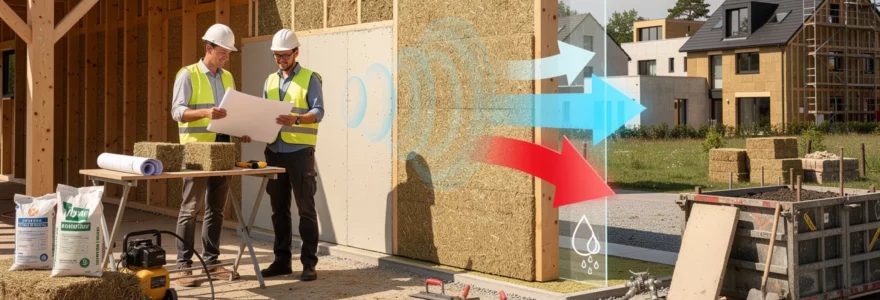 Sur le plan acoustique, la comparaison est également favorable au chanvre. Là où un complexe PSE + plaque de plâtre peine à atteindre des affaiblissements supérieurs à 30 dB pour des épaisseurs courantes, un mur en béton de chanvre de 30 cm, enduit de chaque côté, peut viser des affaiblissements proches de 45 dB. Autre atout majeur : la perspirance. Là où polystyrène et certains pare-vapeur peuvent créer des désordres (condensation interstitielle, décollement de revêtements), les parois en chanvre-chaux laissent migrer la vapeur d’eau, à condition d’être associées à des finitions compatibles (enduits minéraux, bardages ventilés).